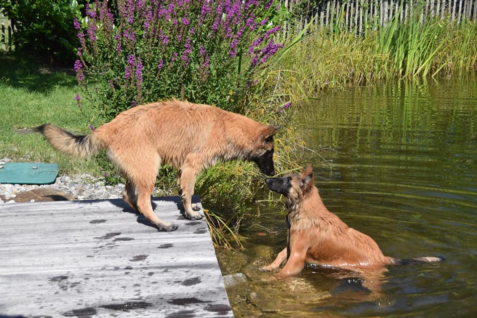 Klasse 💞 heute haben sich die Geschwister Imani und Inacio de la Hacienda Pura Vida getroffen… und die beiden wasserverrückten Tervueren hatten jede Menge Spaß 🐾🎉🐾 Danke Axel für die tollen Fotos